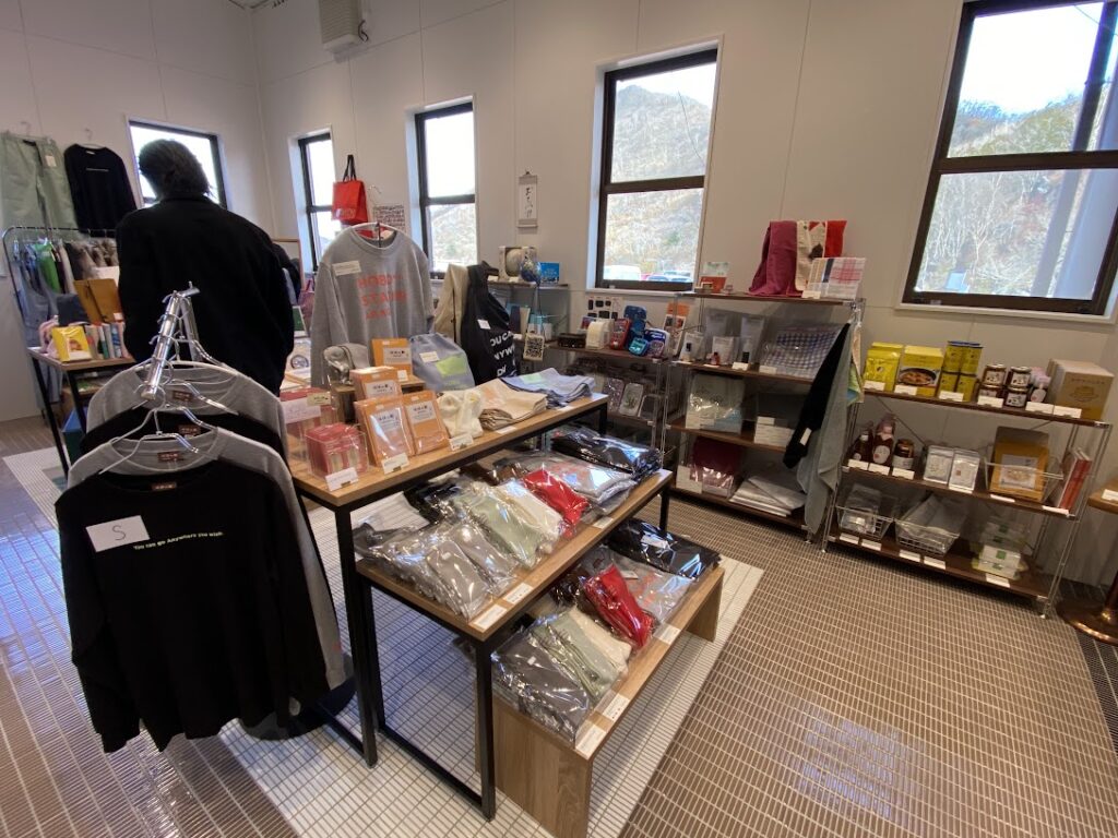 売店には『ほぼの駅 AKAGI』でしか手に入らない限定グッズがずらりと並び、私もオリジナルの靴下を購入。
