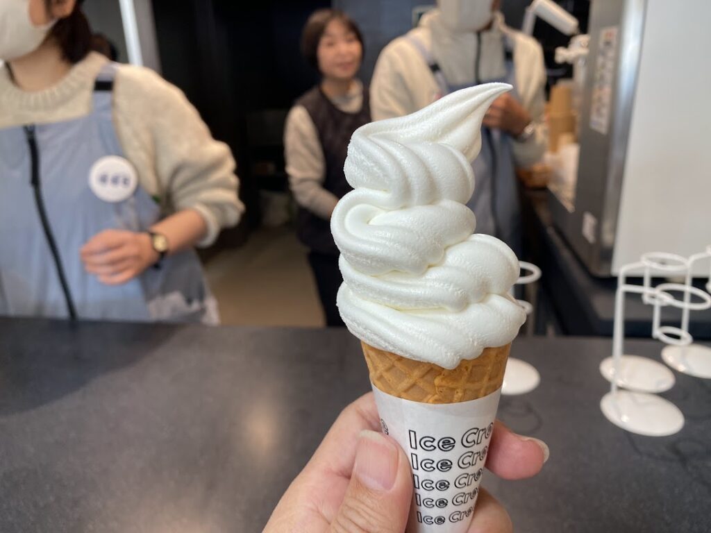 「このソフトクリーム、本当に食感がなめらかでおいしいですね。」