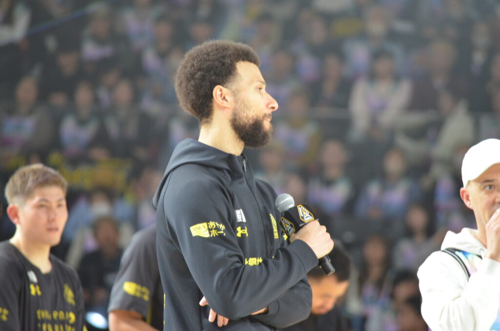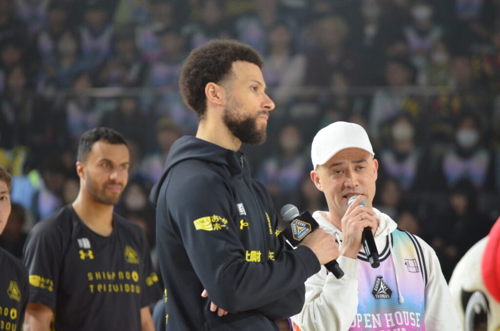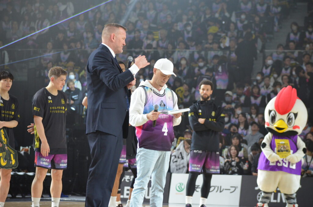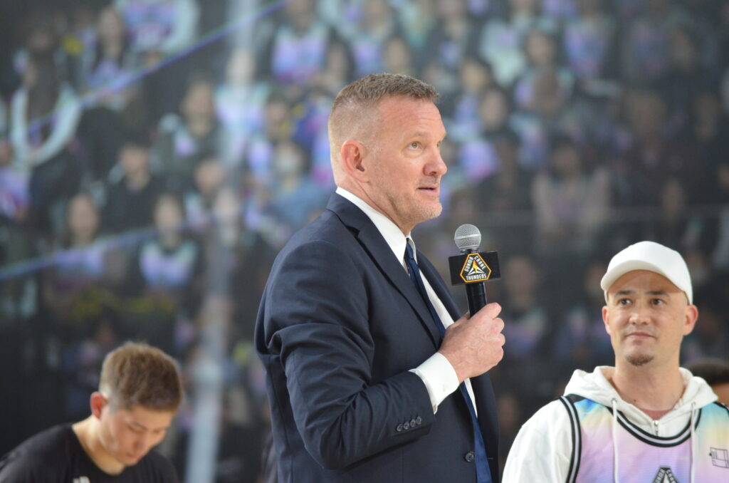 「この太田アリーナで、チャンピオンシップを見たいと思いませんか?」 今シーズンのサンダーズの戦いぶりを「本当に素晴らしい」と称賛。残り1ヶ月となったシーズンに向け、「できればこのホーム・オープンハウスアリーナ太田でチャンピオンシップを見たい。ブースターの皆さんもそう思いませんか?」と問いかけると、会場からは大きな拍手が巻き起こりました。「そこまで辿り着けるよう、共に頑張りましょう」と共闘を誓いました。