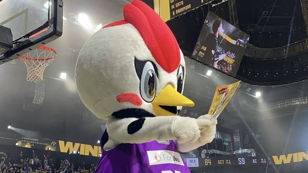 「ポチッと君も参戦!勝利のポーズで夢を掴む」 群馬テレビの人気キャラクター「ポチッと君」と共に登場し、会場を一気に盛り上げました。 「サンダーズ応援のためにポチッと君を連れてきました。CSは夢ではありません」と宣言。ブースターと共に「3、2、1、ポチッ!」の合図で勝利のポーズを決め、最高峰のプレーを楽しむ準備を整えました。