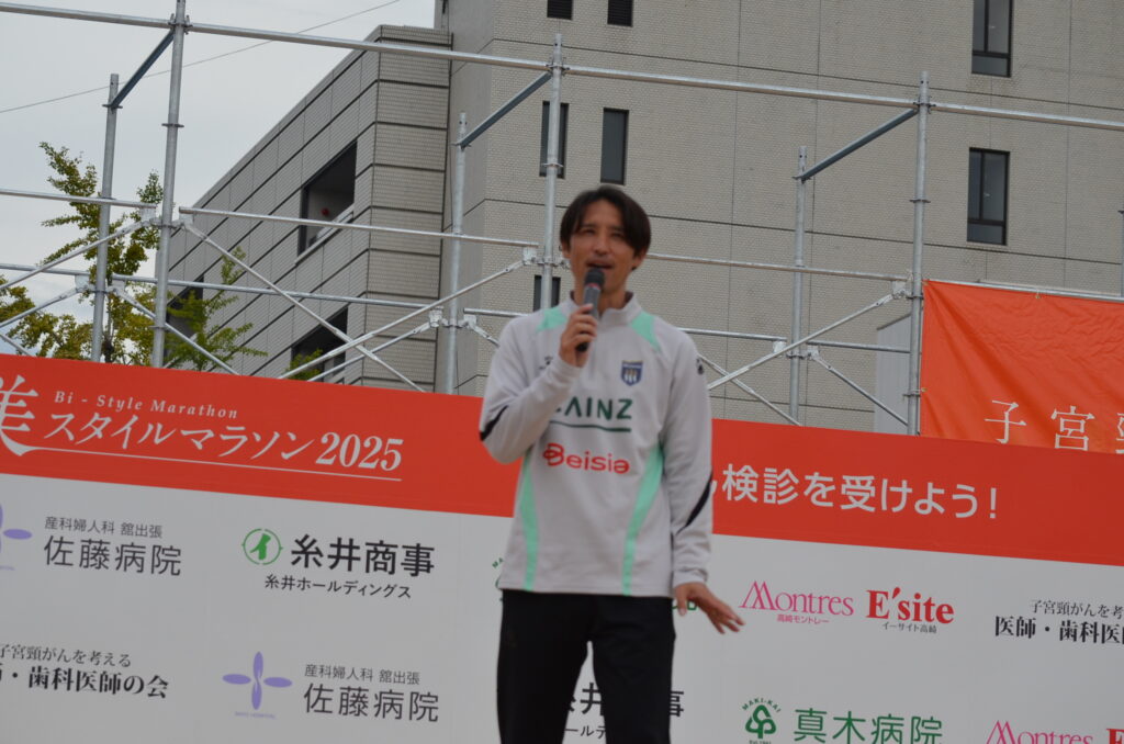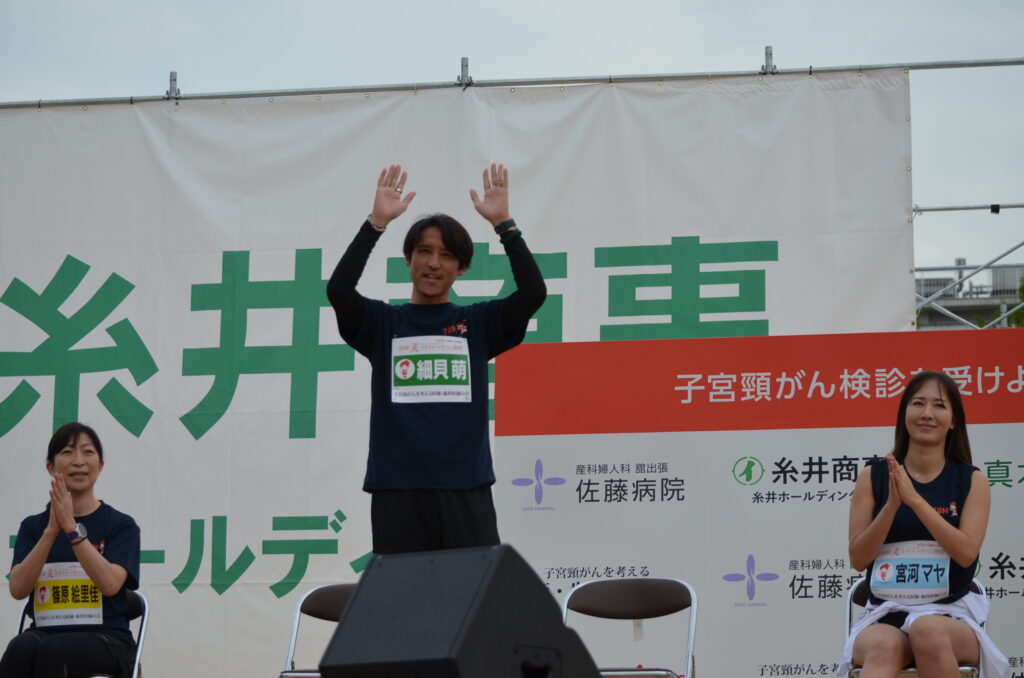 会場にゲストランナーとして、ザスパ群馬の細貝萌社長が登場。
