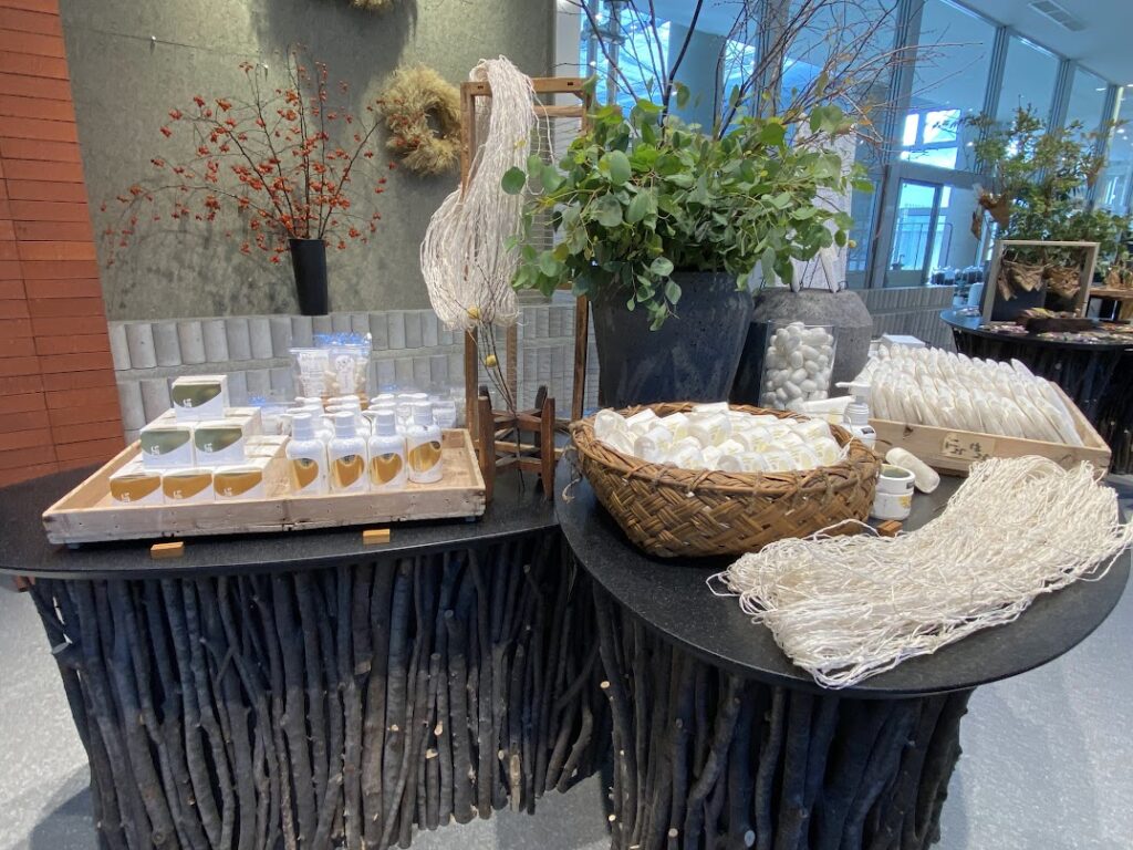ここでしか手に入らない園内の花をテーマにしたオリジナル商品に加え、先人たちが紡ぎ、つなげてくれた群馬の“素敵”な逸品や手仕事の工芸品も集めています。群馬シルクを使ったアイテムや伝統工芸品など、地産地消にこだわった品々は、地域の文化や自然を感じられる特別なアイテムです。