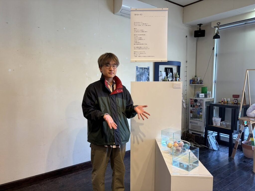 特に、それぞれがどのように鑑賞者との距離や関係性を設計しているのか、また言葉をどのように補助的に、あるいは積極的に用いているのかという点は、自分の中で制作を見直すきっかけになりました。 これまで私は、どちらかというと空間や配置そのものによって関係性が立ち上がることを重視していましたが、今回の経験を通して、それらをどのように整理し、他者にひらいていくかという視点にも意識が向くようになりました。 大きく方向が変わったというよりも、他者の方法を知ったことで、今後さらに探究していきたい領域が広がったと感じています。