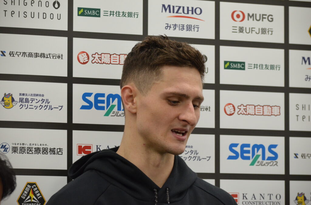 群馬クレインサンダーズの中村拓人選手は16日のホーム開幕戦後、会見で試合の総括と自身の役割について語った。