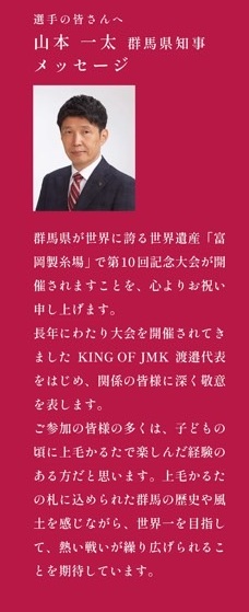 栄えある第10回大会を記念してKING OF JMK おとな達の上毛かるた大会は世界一決定戦と銘打ち、世界遺産の富岡製糸場で開催されました。