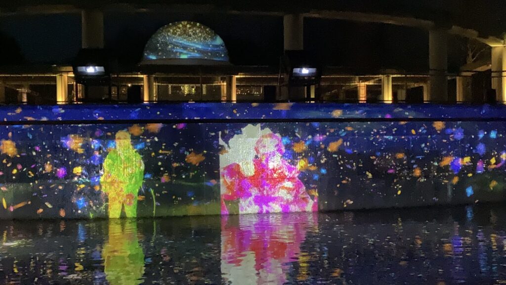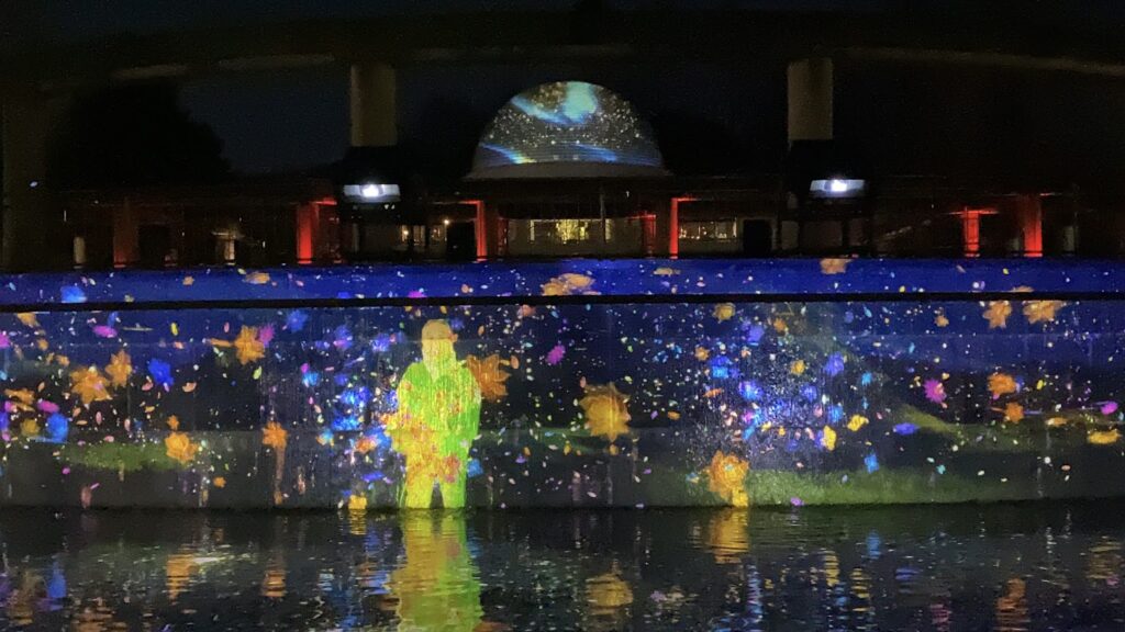 園内では、来場者の動きに反応して光や音が変化するインタラクティブな演出が随所に取り入れられている。独自のシステムにより、手の動きひとつで光が広がったり、自身の姿が演出の一部として投影されたりすることで、深い没入感を生み出している。