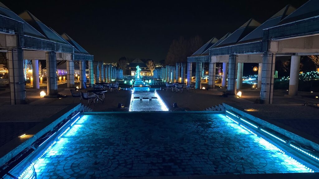 夜のフラワーパークを歩きながら感じたのは、「イルミネーション」という言葉だけでは収まりきらない体験でした。光を“見る”のではなく、光に“参加する”ことで、風や水、森の気配にまで意識が向いていく。そんな時間が流れていました。